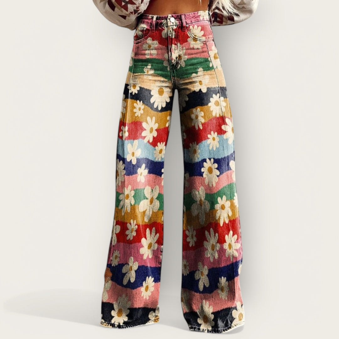 Explore the retro charm of our Vinicia Floral Palazzo Trousers. With its high-waisted design and fluid silhouette, these trousers represent the perfect combination of timeless style and modern comfort. The sophisticated cut enhances your figure while ensuring freedom of movement, making it ideal for those seeking elegance and practicality in their wardrobe.