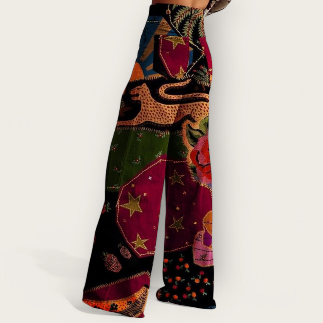 Distinctive Design : With a vintage boho style and wide cut, these trousers are designed to catch the eye and make a statement.