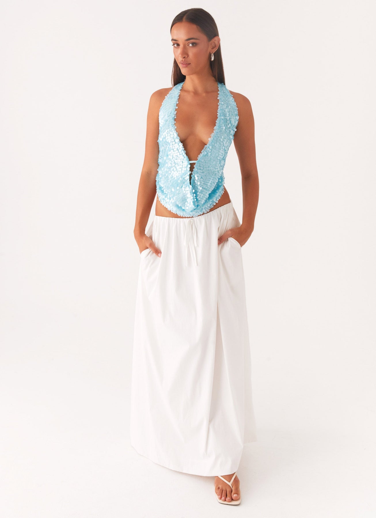 Embrace effortless elegance with the Rio Dreams Cowl Neck Halter Top. Featuring a flattering cowl neck at the front that adds depth, this top has a daring open back for a touch of allure. The wide straps provide both comfort and support, making it the perfect choice for a stylish night out.